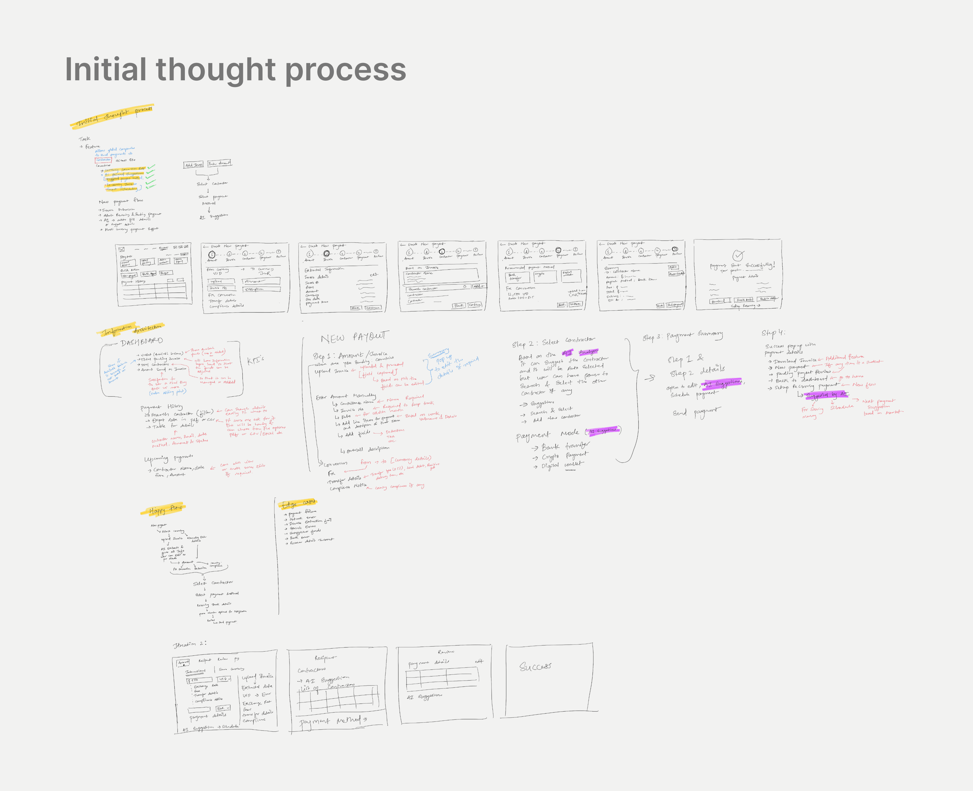 Before touching screens, I mapped the problem space, what decisions a finance manager actually makes during a payment, where errors occur, and where AI could absorb complexity without asking users to trust a black box.